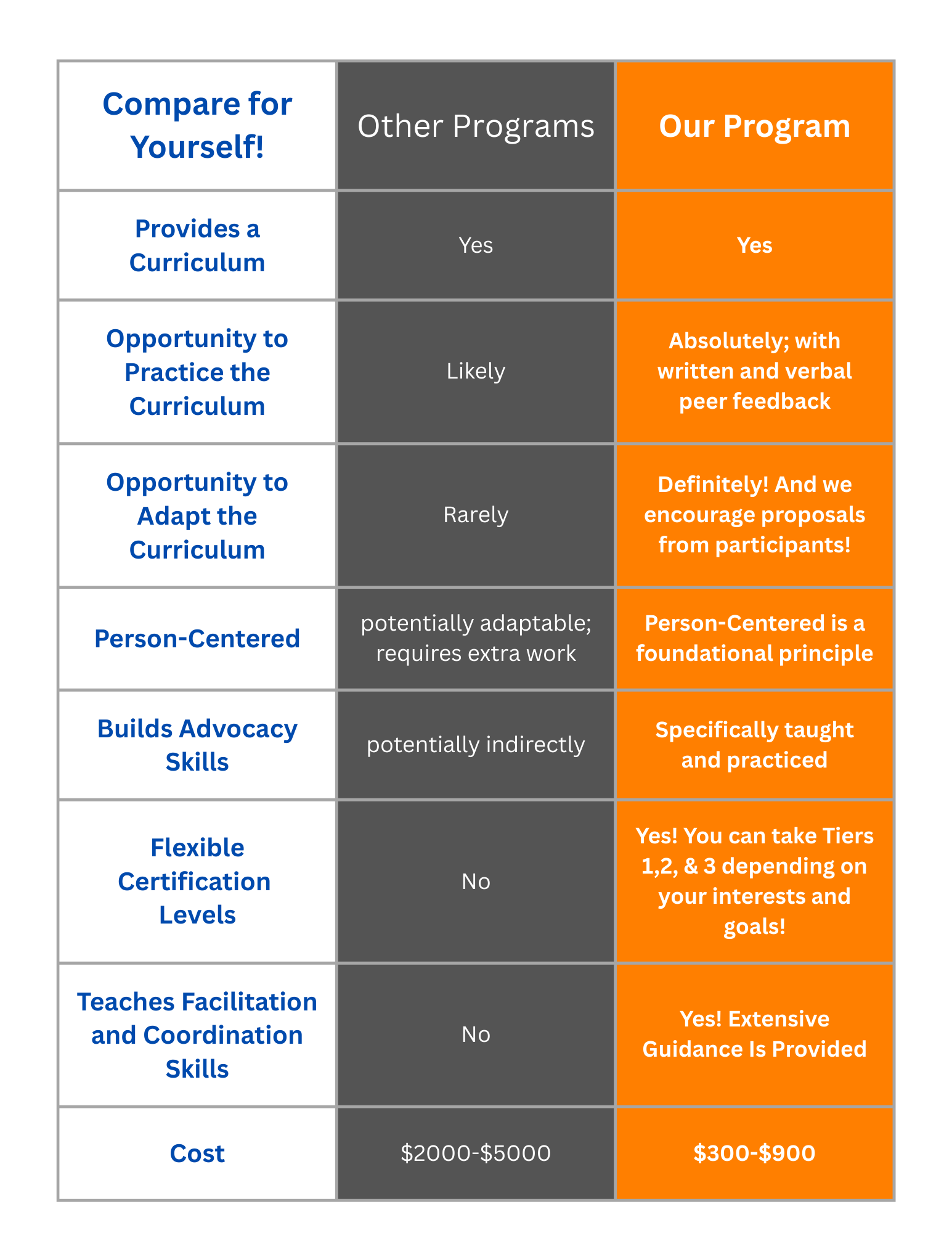 Compare Our Program!